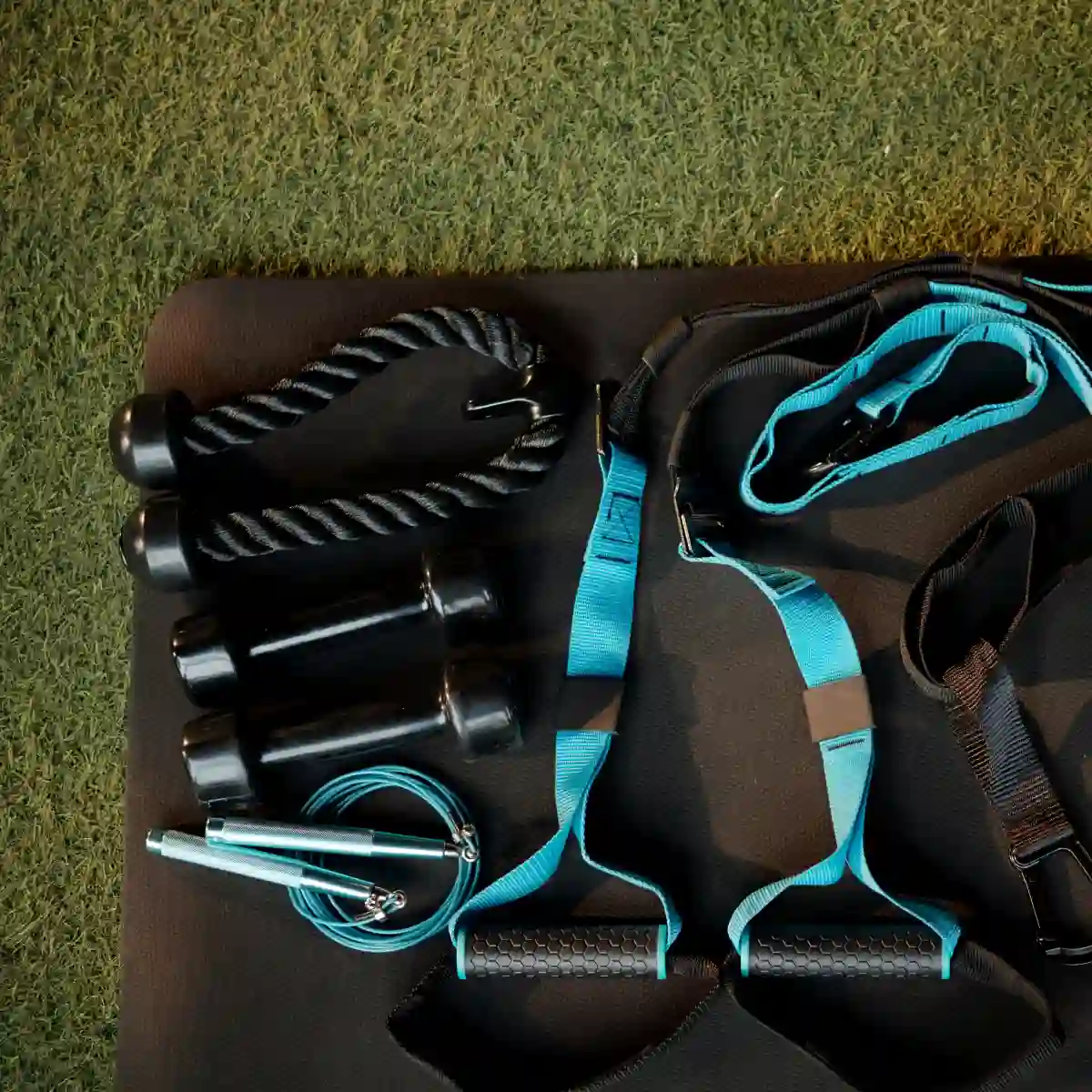 Las cuerdas de salto y las bandas de resistencia para rutinas HIIT son excelentes para el gasto calórico.