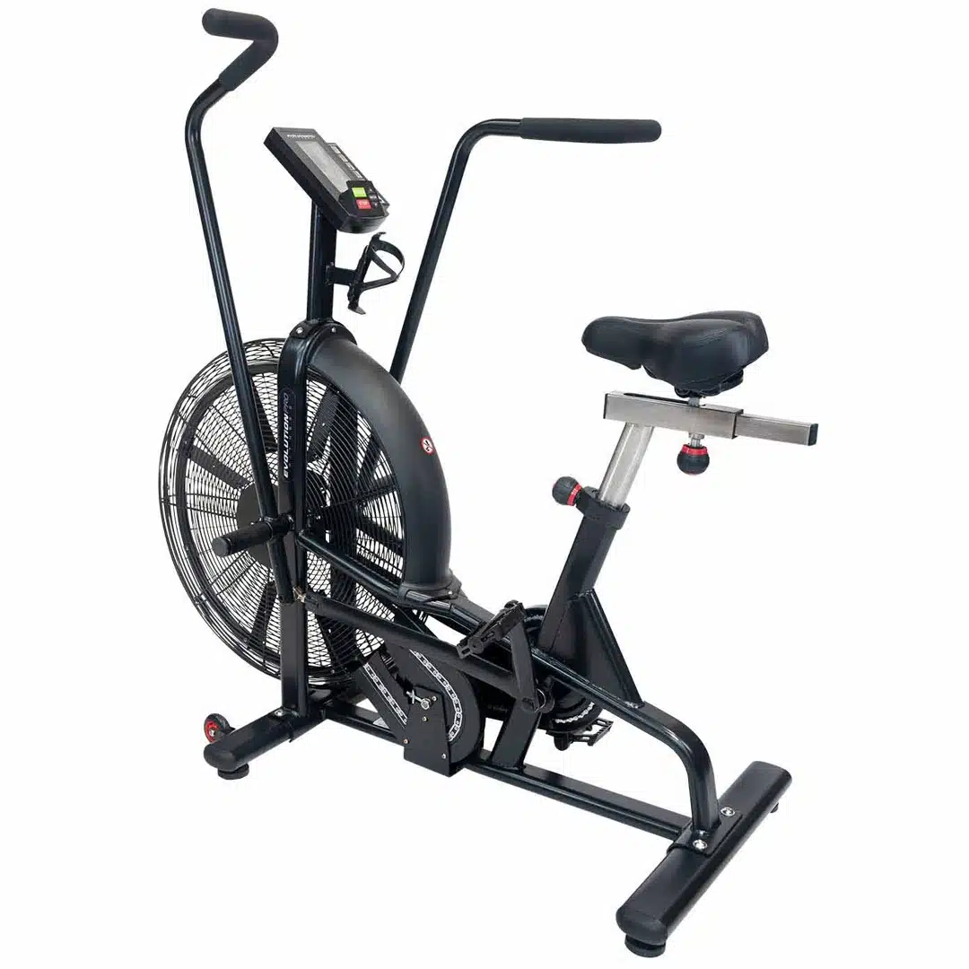 Air Bike Evolution Pro. Bicicleta con resistencia por aire, brazos móviles y diseño ergonómico para entrenamientos de cardio completos e intensivos.
