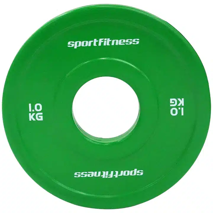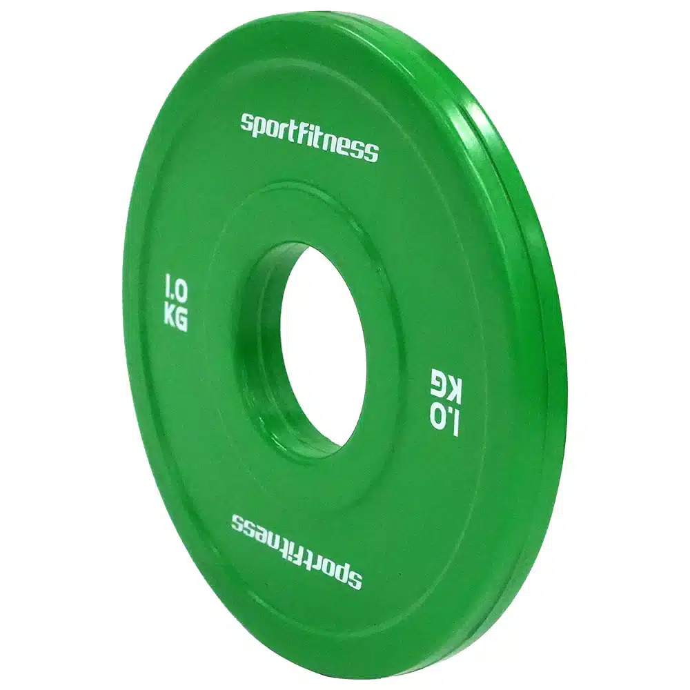 Disco Olímpico Full Color Sportfitness 1 kg. Preciso, resistente y ideal para microcargas y progresiones controladas.