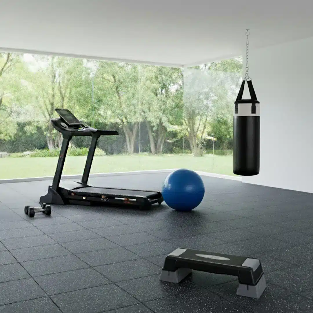 Láminas de Caucho en Fichas FM-RM-05 Sportfitness. Resistentes, seguras y profesionales. Ideales para proteger pisos y reducir impactos en gimnasios.